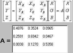 有了 RGB 和 XYZ 二組對應值就可以得到轉換函數 (A) 或螢幕的 ICC PROFILE