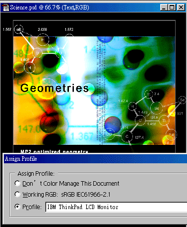 將螢幕的描述檔帶指定進來,此例的 ICC PROFILE 即為 IBM ThinkPad LCD Monitor