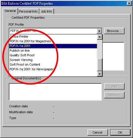 在 Enfocus Certified PDF 特性裡有許多的描述檔,針對不同的領域做預檢的動作,如 PDF/X-1a就有三種不同的檔案