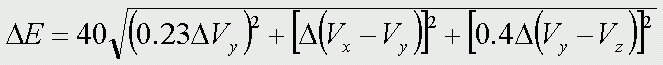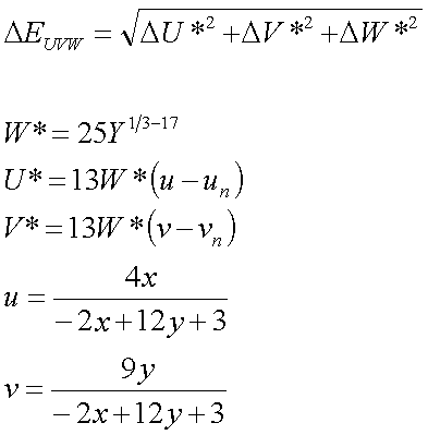 因此己知三刺激值X,Y,Z 後可用以下的式子求得Vx, Vy, Vz