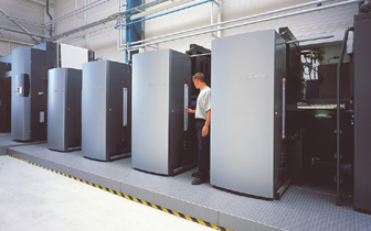 從進紙、雙面印刷、烘乾、摺紙都可以在輪轉機線上完成 |