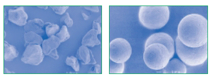 傳統色粉 (左)和 EA 色粉(右)的比較 資料提供 XEROX |