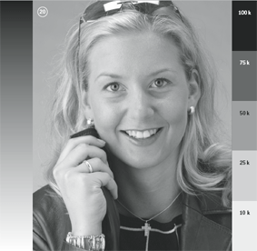 第20號的單色黑版人像和階調表 |