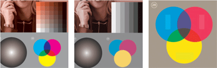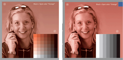 左圖為正確表現疊印 右圖為無法正確表現疊印 |
