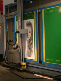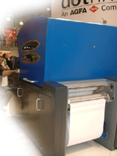 dotrix 已成為 AGFA 的公司之一了。本次展出的主力產品就是令人注目很久的 the . factory (唸成 the dot factory)。 Dotrix 採用獨特的 SPICE (Single Pass Inkjet Color Engine) 技術,配合 UV 印墨,可印在紙張以外的材質,而更令人驚奇的是他飛快的速度,在 650 mm 寬幅的捲筒紙,每小時可達 900 m2 。現場除了有機器展示外,也可看到不同的應用實例。
