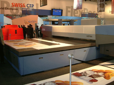 除了熱感的 CTP 之外,可以看到電腦直接製網版 (CTS:Computer To Screen) 的設備 JetScreen。和大型、可印製到 80mm厚的平台噴墨機 JetPrint UV。