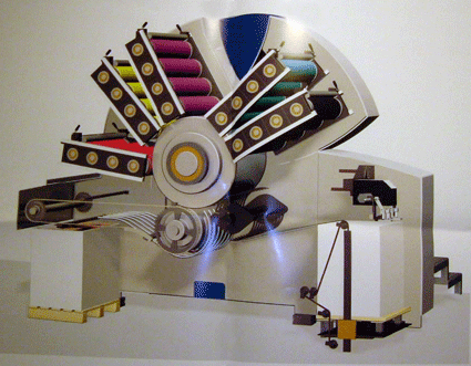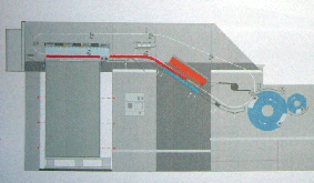 | 在最後一座印刷單元出來的紙張,經由一座大倍徑的轉接輥後,更能平穩的將紙張交給收紙咬爪。 |