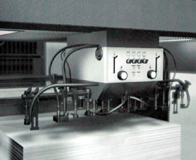 | 紙張到達前檔和邊規的位置,將會降減到最低的速度,然後由加速輪將紙張帶出去。當然這些裝置仍具有事前設置調整的功能。而邊規現在具有自我清潔的能力,以防止積太多紙粉等,造成對位失敗。 |