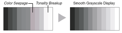 有了正確的 gamma 曲線後,灰階的表現就會如同右邊的平順 |