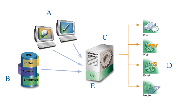 : 強而有力的 uProduce API 可以容易的開發出符合客戶需求的方法,而且是架構在 PersonalEffect 平台上,也結合了客戶關係和流程管理系統。它也可以應用在網路至印刷的流程 (Web to Print)。