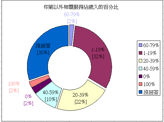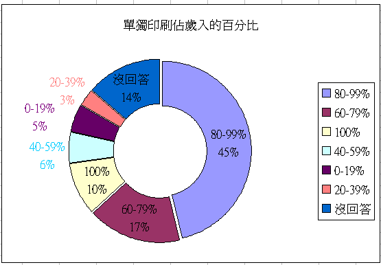 ▲只有百分之十的受訪者認為100%的歲入是從印刷本業獲利得來的。