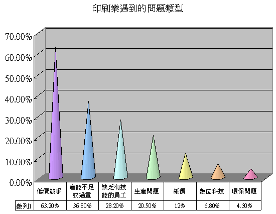 ▲缺乏有技能的員工將會有越來越嚴重的情形,因為大部的印刷科系都逐漸轉變成更有特色的系所了,而且印前的技術普遍朝向更簡單化的作業模式後,操作印刷機的人更形短缺。公司內部加強培訓和標準作業流程和管理模式才可以解決此問題。