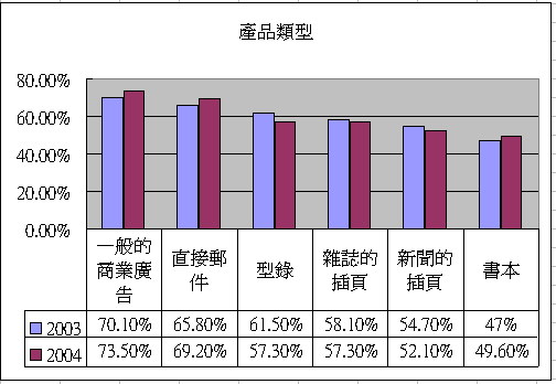 產品類型(不含雜誌和商業表格)