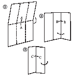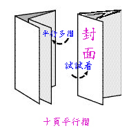 像摺扇子一樣的摺法,箭頭方向是摺完後的二頁朝向不同方向 |