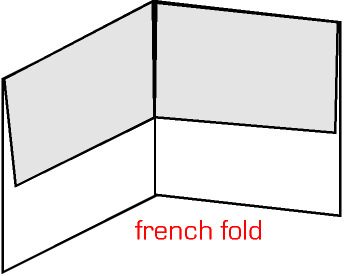 左右二邊的兩頁往裡邊摺,並相遇於中間的地方,且不重疊 |