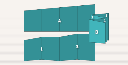 試著把傳統的扇形摺包上一個封面吧!雖有創意,但是否能由裝訂設備自動完成,則必須和您的後加工廠商好好研究一下。 |