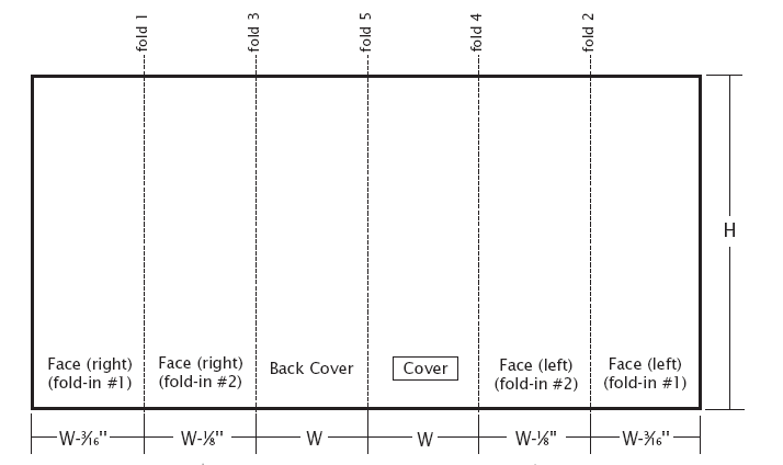 這是做成雙開門摺的平面工作圖,此檔不僅是教您如何做內縮和如何摺,更讓使用者在設計時就能有足夠的資料來安排版面。 |