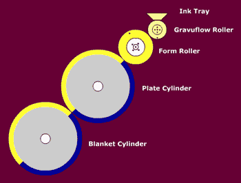 GravuFlow 是採用網紋輥原理進行墨量控制,網紋輥上多餘的油墨被刮墨系統所移除,然後藉由觸版墨輥將油墨轉移至版輥上。