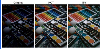 ☆IT8 是於 1980 年設計的,當時主要是以視覺來判斷,然後被拿來當成輸入設備的導具。相較之下,HCT 是專門針對輸入設備的色彩描述檔而設計的。