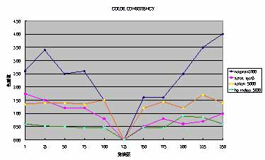 縱軸是與第125張比較的色差值,此例從第一張比到第250張,每25張抽樣測量一次。