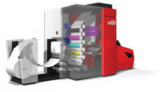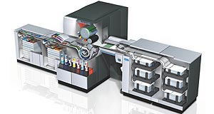 這是一台像平版印刷機的設備。在用墨方面是屬於液態狀的電子墨,也有橡皮布來和紙張接觸。但橡皮布會被加熱到攝氏 100 度才能將電子墨熔化成薄狀漂浮似的塑膠層,轉移到紙張上時,由於紙張是屬於室溫的冷狀態,因此電子墨碰到紙張就馬上固化,也因此可以毫不殘留在橡皮上以方便下一次的列印。