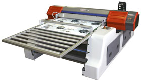 AGFA也與 Thieme 合作共同推出 160X260cm 的 M-Press 平台式噴墨印刷機,每小時的印量是 100 張。此台機器較有趣的是模組化的結構,它可以結合絲網印刷的機器模組。在進料方面是自動的將被印物進出,厚度在 10mm 的材質。噴頭也是由 UPH 噴頭組成,每秒可以射出二百萬個墨滴。