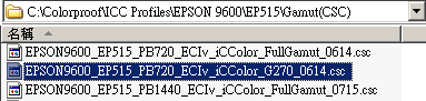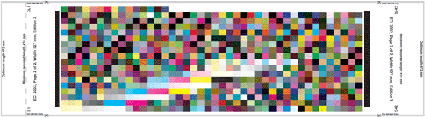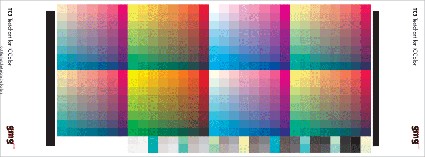 印表機可以表現多大的色空間是以印出 ECI 2002 的導表來做判斷。此導表共有 1485 個色塊。紀錄每個色塊的色彩值是採用iccolor 的儀器來量測,並將檔案存成 .csc 的色域空間描述檔。
