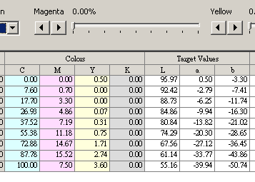 有了墨水量的限制值之後,再將 ECI 2002 導表結合限制後的條件印出來,並以 iccolor 儀器量測完後存成限制後印表機的色空間(.css file)檔案。