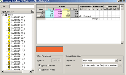 特別色的處理是以 pantone 色票為標準,而使用者也可以訂定自己的特別色名稱。gmg 是以印表機的最大色域空間來模擬特別色,如此才能表現出較大的模擬能力。