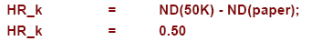 HR_k 是量測黑版 50% 的色塊減去紙白的濃度。G7 定義了 HR_k 的數值為: