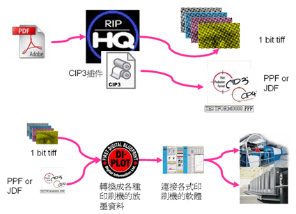 DI_Plot 可以接收標準 CIP3的PPF檔案,或CIP4的JDF,或1