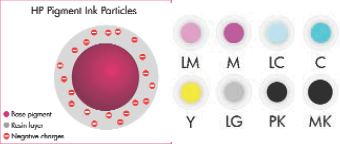 Designjet Z3100 採用了十二色 Vivera 顏料墨水和 HP 70 亮上墨水、HP Quad-Black 墨水。