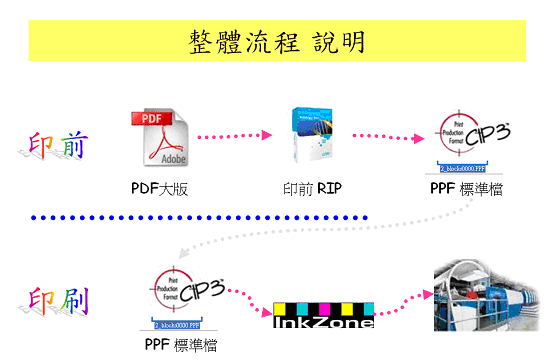 CIP3/4 預放墨工作,在印前和印刷的流程說明 |