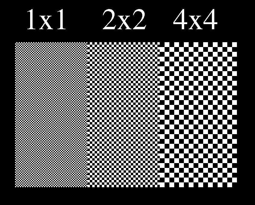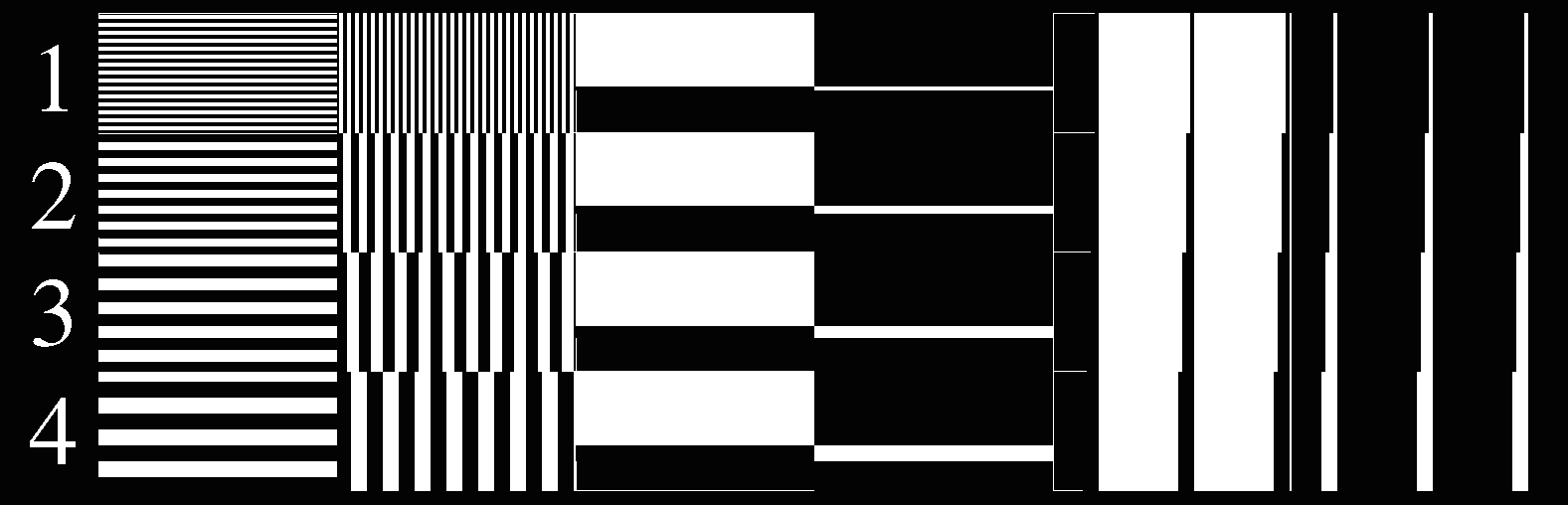 第一和第二欄的規格為1:1的水平和垂直之黑白線,每一欄又分為4列,分別為輸出機最小網點的一至四倍為每一列的基本點,如圖。