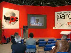 Peter Alsfasser說:「在歐洲有三家大印刷廠,在今年初完成了ERP的建置,三家都是Creo的CTP加上有JDF的Prinergy印前流程,還有Muller Martini配備JDF的騎馬釘裝訂機,我在印刷雜誌看到Hiflex MIS軟件公司發佈的消息。所以Satish說的完整型的,也還不算完整,因為這些印前廠商八竿子也搆不著這些印後設備。」溫和慢節奏的英語,讓你找不到打斷他說話的時機。Peter 是個銀髮,風度翩翩的德國紳士,在以前的頂鼎有名的Crosfield 印前設備供應商作了半輩子的研發部主管,退休後成立了一家公司開發一套報業排版系統,在德國印前系統整合這個行業裡,輩份無人出乎其右,在德魯巴會場也推出一套全新的JDF流程。