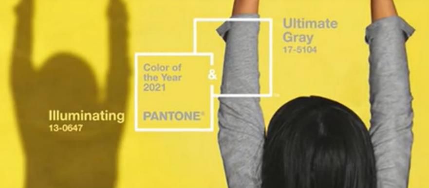 Pantone 年度顏色(Color of the Year)- 日照陽光的亮黃色和河床上鵝卵石的灰色兩個顏色,來表現2021年大家堅韌不拔。